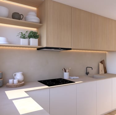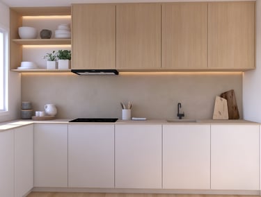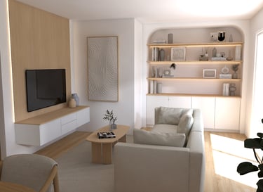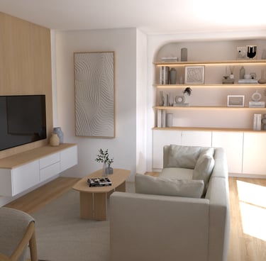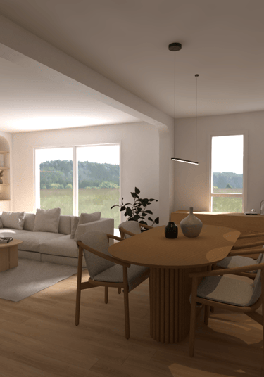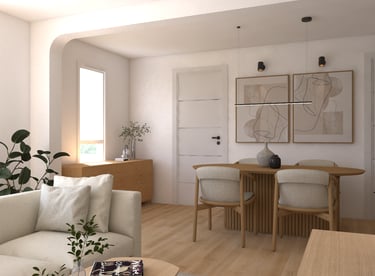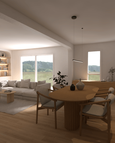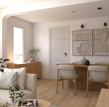 En este proyecto residencial hemos apostado por una estética contemporánea cálida, donde la luz natural y la conexión entre espacios son protagonistas. La vivienda se organiza mediante estancias esteticamente conectadas para favorecer la amplitud y el bienestar, con grandes ventanales que integran el exterior en el interior.