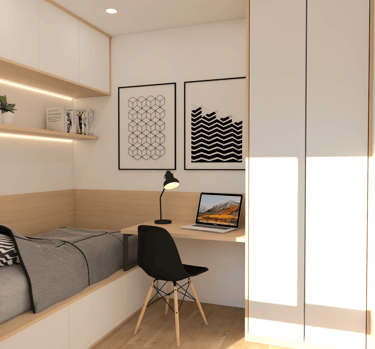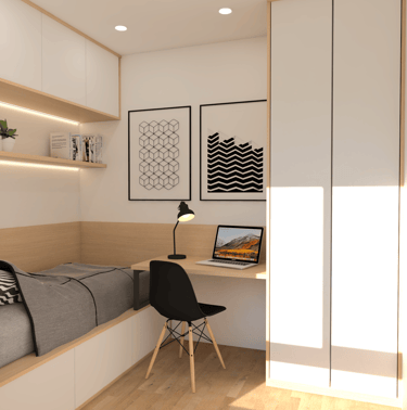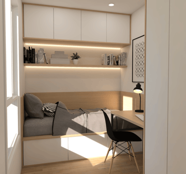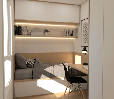 La obra previa a estas estancias de diseño fue pensada en pro de una nueva distribución de los espacios de esta vivienda, como vemos reflejado en los planos previos al proyecto, se ha optado por una modificación de la organización de la habitación principal, dando lugar a las nuevas y a su vez ofreciendo el nuevo y amplio salón. Esta y otras pequeñas modificaciones han conseguido crear un espacio mucho más conectado consigo mismo.