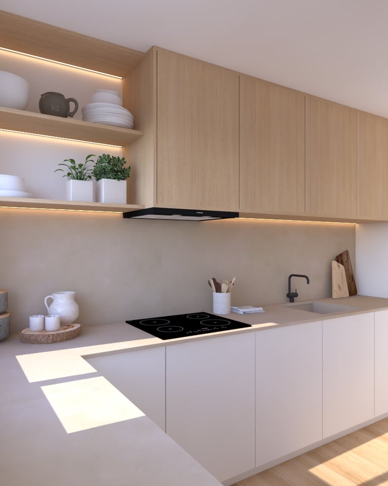 Los tonos neutros y tierras, predominan junto con la madera natural, creando calidez en todo el conjunto. Esta misma esencia se traslada a todos los espacios, manteniendo uniformidad basada en la simplicidad y la armonía. El resultado es un hogar equilibrado, atemporal y pensado para el bienestar diario.